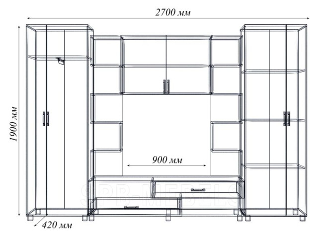 - Общие размеры (ШхВхГ) 2700х1900х420