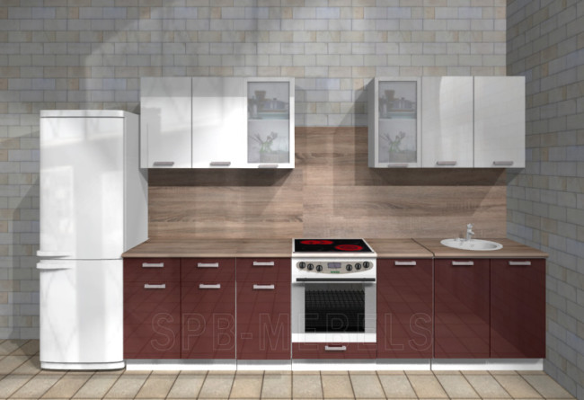 Кухонный гарнитур Шарлотта низ Бордо глянец верх белый глянец