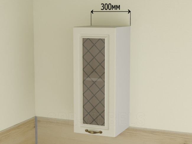 Навесной шкаф со стеклом 30 см ШВС30 | Кухня Айвори